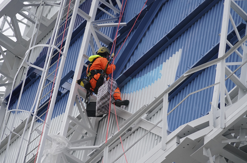 «По оценкам, для создания мурала понадобится около полутора тысяч баллончиков с аэрозольной краской. Мы выбрали мягкие оттенки синего и голубого, чтобы соединить мотив воды, неба и движения. Главная задача – изобразить китов так, чтобы металлоконструкции градирни не напоминали сеть, в которую запутались млекопитающие. Большая часть мурала будет направлена в сторону Анадырского лимана. Это позволит видеть рисунок практически с любой точки города», - рассказал корр. ИА "Чукотка" Максим Миронов. Источник: https://prochukotku.ru/news/infrastruktura/khudozhniki_pristupili_k_sozdaniyu_murala_na_gradirne_anadyrskoy_tets/