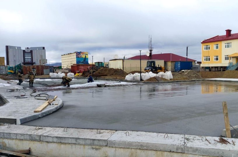 «На сегодняшний день готовность объекта оценивается в 55 процентов. Согласно графику, полное завершение строительства и сдача объекта запланированы на 31 октября. Параллельно ведутся активные работы по нескольким направлениям: специалисты выполняют антикоророзионную защиту металлоконструкций для долговечности здания, монтируют кровлю, прокладывают наружные электрические сети и занимаются благоустройством прилегающей территории, включая устройство тротуаров и установку оснований для будущего освещения», – сообщили в окружном правительстве. Источник: https://prochukotku.ru/news/infrastruktura/stroitelstvo_sportivnogo_zala_zavershaetsya_v_administrativnom_tsentre_chukotskogo_rayona/