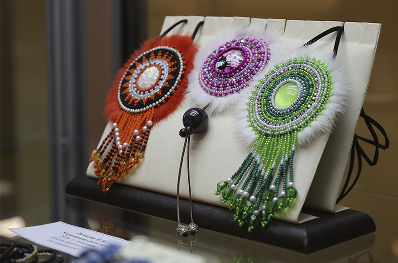 На выставку свои работы представили 40 мастеров. Жюри предстоит рассмотреть 368 экспонатов. Среди них 177 изделий из кожи и меха, 88 — из кости и рога и 42 произведения изобразительного искусства. Посетители увидят множество женских украшений: подвески с натуральными камнями, бисерные розетки и головные повязки. В экспозиции также представлены выточенные из кости фигурки и брелоки с изображениями чукотских духов, животных и коренных жителей. Здесь можно найти гравированные изделия, эскимосские шары, национальную одежду, куклы и работы из рыбьей кожи. Экспозицию дополнили картины, часть из которых выполнена в японской технике суйбокуга.