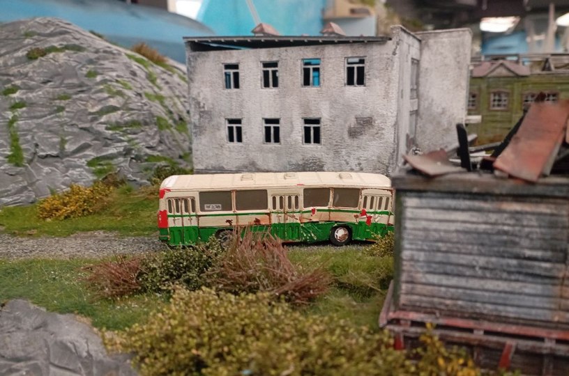 Военный мини-город продуман вплоть до мелких бытовых деталей. На въезде в него стоит наблюдательная вышка, рядом с которой бочки из-под ГСМ. Посреди города находится бывший двухэтажный магазин. В гаражах ржавеют бронетранспортёры, а на улице стоит сломавшийся пассажирский автобус "Икарус". Все объекты и природные территории сделаны из пластика.