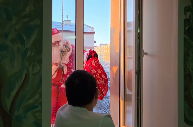 Дед Мороз спустился с крыши к юным пациентам Чукотской окружной больницы