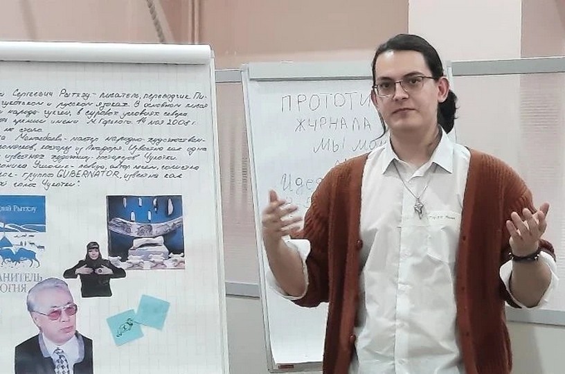 «Работа над номером сейчас даёт нам возможность встретиться с интересными людьми, прокачать свою насмотренность и вообще получше узнать о нашем регионе, традициях и обычаях нашего народа. И получается, сейчас мы с нашими сверстниками будем создавать первый выпуск», - поделился впечатлениями шеф-редактор журнала, учащийся окружного профильного лицея Ростислав Чейвун. Источник: https://prochukotku.ru/news/obrazovanie/molodyezh_chukotki_gotovit_spetsialnyy_vypusk_zhurnala_my/