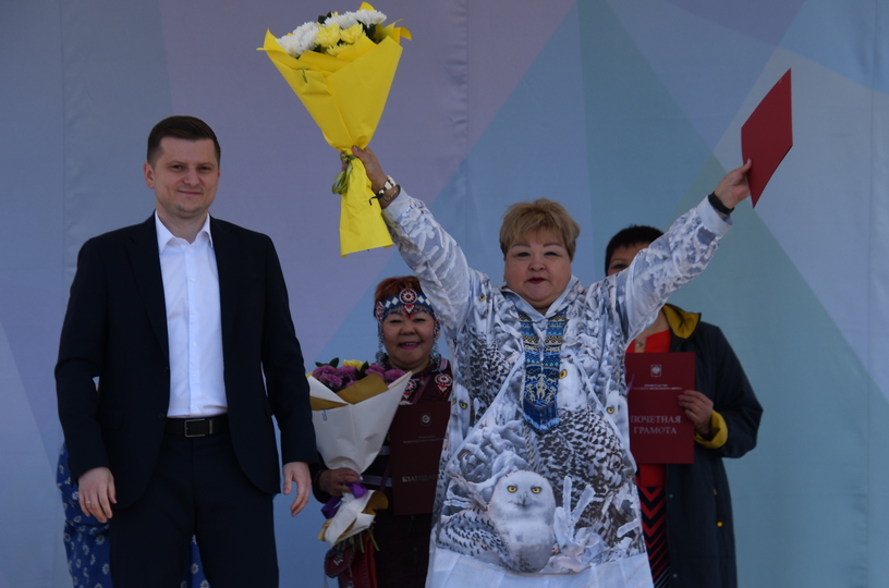 Почётные грамоты с благодарностями губернатора и правительства округа получили ещё семь общественников региона. Затем с поздравлениями выступили председатель Думы Чукотского АО Леонид Николаев и мэр Анадыря Сергей Спицын. Источник: https://prochukotku.ru/news/obshchestvo/den_korennykh_narodov_mira_otmetili_v_anadyre/