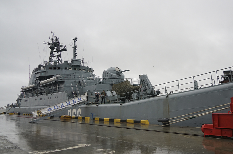 Торжественную встречу с экипажем провели в трюме большого десантного корабля "Ослябя". Это решение приняли по погодным условиям – в городе идет дождь и дует северный ветер, порывы которого достигают 15 метров в секунду. Морской тральщик "Пётр Ильичёв" при этом остался стоять на рейде в недалеко от десятого причала. Жители округа поприветствовали моряков хлебом с солью. Рапорт первому заместителю губернатора Павлу Каргаполову зачитал командир отряда боевых кораблей ТОФ, контр-адмирал Александр Шварц. Источник: https://prochukotku.ru/news/obshchestvo/khlebom_i_solyu_vstretili_boevye_korabli_tikhookeanskogo_flota_v_stolitse_chukotki/