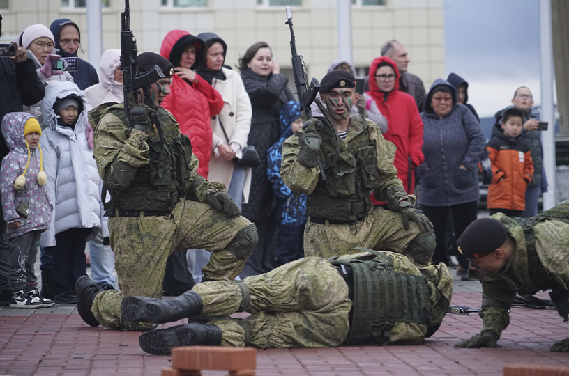 «Мы привезли с собой более тысячи экспонатов. Экспозиция рассказывает историю морской пехоты от создания ее Петром I до сегодняшних дней. Посетители смогут увидеть оружие наших моряков и личные вещи героев. Представлены трофеи, которые достались от германских и японских войск, а также украинских формирований», – рассказал преподаватель Тихоокеанского высшего военно-морского училища имени Макарова, капитан третьего ранга Александр Тихонов. Источник: https://prochukotku.ru/news/obshchestvo/khlebom_i_solyu_vstretili_boevye_korabli_tikhookeanskogo_flota_v_stolitse_chukotki/