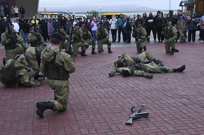 В Окружном Доме народного творчества жители и гости окружной столицы увидели выступление военного оркестра, Ансамбля песни и пляски ТОФ, а также двух вокально-инструментальных ансамблей – "Морпехи России" и "Камчатский рубеж". В 19:00 запланированы показательные выступления личного состава 40-й отдельной гвардейской бригады морской пехоты на площади у ОДНТ. В воскресенье драмтеатр ТОФ представит музыкальный спектакль "Агитбригада: Годам нет пощады" (6+). С 12 до 17 часов запланированы экскурсии на БДК "Ослябя". Источник: https://prochukotku.ru/news/obshchestvo/khlebom_i_solyu_vstretili_boevye_korabli_tikhookeanskogo_flota_v_stolitse_chukotki/
