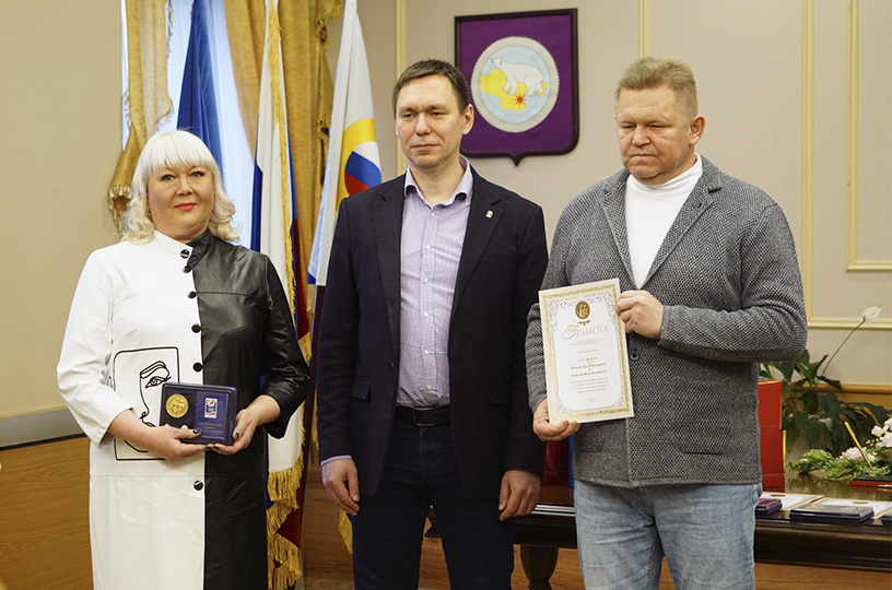 Кроме того, благодарственное письмо губернатора Чукотского АО Владислава Кузнецова за содействие в укреплении роли семьи вручили семье Литвиновых — Александре и Марине. А награду от окружного департамента соцполитики вручили чете Пономаренко — Роману и Марии. Источник: https://prochukotku.ru/news/obshchestvo/supruzheskie_pary_so_stazhem_nagradili_medalyami_za_lyubov_i_vernost_v_anadyre/