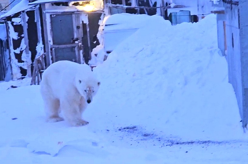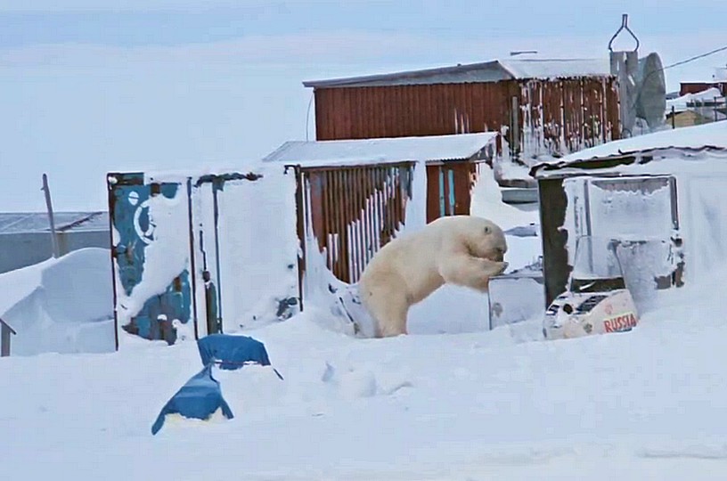 «Он наведался к Алексею Пелянто, который год назад уже усиливал ящик с моржовым мясом гвоздями. Но этого оказалось мало – Умка вскрыл хранилище и утащил кусок. Сергей Комиссаров попытался спугнуть зверя петардами, но медведь с добычей скрылся во тьме», – сообщил житель села Андрей Этэкмэн. Источник: https://prochukotku.ru/news/priroda/belyy_medved_povadilsya_taskat_myaso_u_zhiteley_sela_na_chukotke/
