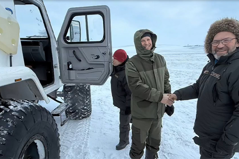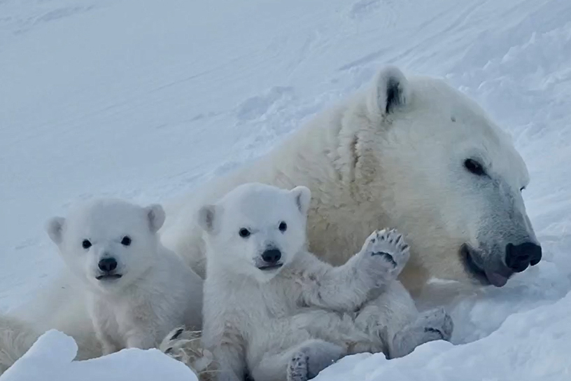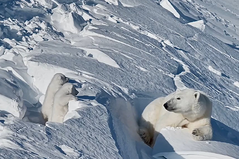 Окрестности кордона "Неожиданная" стали относительно новой территорией для исследований и съёмок: учёты берлог медведей последний раз проводились там в советское время. Особенно символичным стал День рождения заповедника – 23 марта. В юбилей учётчики и документалисты под руководством директора Николая Маковеева нашли третью, четвёртую и пятую берлоги, расположенные всего в 5–15 км от кордона. Ближайшая к лагерю медведица была настроена очень дружелюбно: её медвежата весь день играли на виду, что позволило снять множество трогательных кадров для будущего фильма. Такое доверие со стороны обитателей острова в день юбилея команда восприняла как добрый знак. Источник: https://prochukotku.ru/news/priroda/druzhelyubnaya_medveditsa_s_medvezhatami_stala_zvezdoy_syemok_na_ostrove_vrangelya/