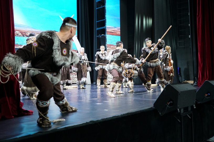 Концертная программа "Плечом к плечу" стартовала через час. В зале не было свободных мест, некоторые зрители сидели на принесённых стульях и на полу. Артисты государственного чукотско-эскимосского ансамбля "Эргырон" представили 25 номеров из "золотого фонда" коллектива. Концерт начался с "Обряда благодарения". Затем были "Говоруньи", "Палки-выбивалки", "Сбор ягод" и другие номера. После концерта зрители долго не отпускали артистов, устроив с ними фотосессию. Источник: https://prochukotku.ru/news/svo/kontsert_ergyrona_i_yarmarka_v_podderzhku_boytsov_svo_sobrali_v_anadyre_okolo_milliona_rubley/