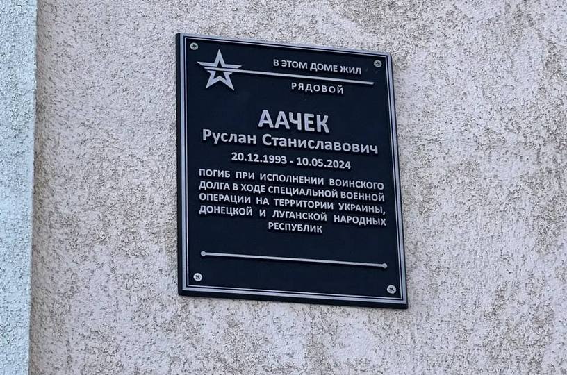 Памятный знак разместили на фасаде дома №21 по улице Набережной. В церемонии приняли участие уполномоченный главы администрации муниципалитета, сотрудники предприятия "Имени Первого Ревкома Чукотки", родственники и друзья Руслана Аачека, жители села. Почетный караул несли воспитанники военно-патриотическо го клуба "Патриот". Право открыть мемориальную доску предоставили маме и сестре Руслана. Источник: https://prochukotku.ru/news/svo/memorialnuyu_dosku_v_pamyat_ob_uchastnike_svo_ustanovili_v_sele_ust_belaya/