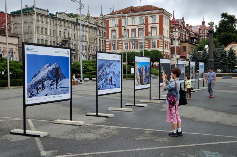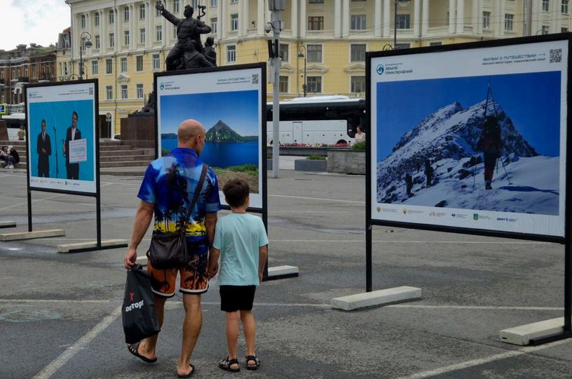 Фотовыставка помогает увидеть природу Дальнего Востока. На каждом макете есть QR-код. Отсканировав его, можно посмотреть фильмы финалистов конкурса и узнать детали маршрута. Источник: https://prochukotku.ru/news/vef/sdelannoe_na_chukotke_foto_drevneeskimosskoy_kreposti_predstavili_vo_vladivostoke/