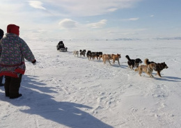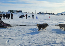 Собачьи упряжки встретили у построенного на льду бухты города эскимосов
