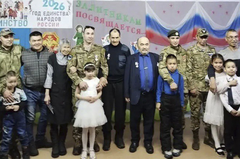 В Чукотском районе медали "Отец солдата" вручили трем жителям села Лорино: Борису Альпыргину, Сисинбаю Кайсагалиеву и Вячеславу Эллы. Их сыновья тоже ушли в зону проведения СВО добровольцами. Александр Альпыргин награжден медалью "За отвагу", Хайсажан Кайсагалиев – орденом Мужества, оба – посмертно. Источник: https://prochukotku.ru/news/svo/zhiteley_chukotki_otmetili_medalyami_otets_soldata/