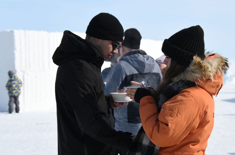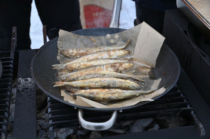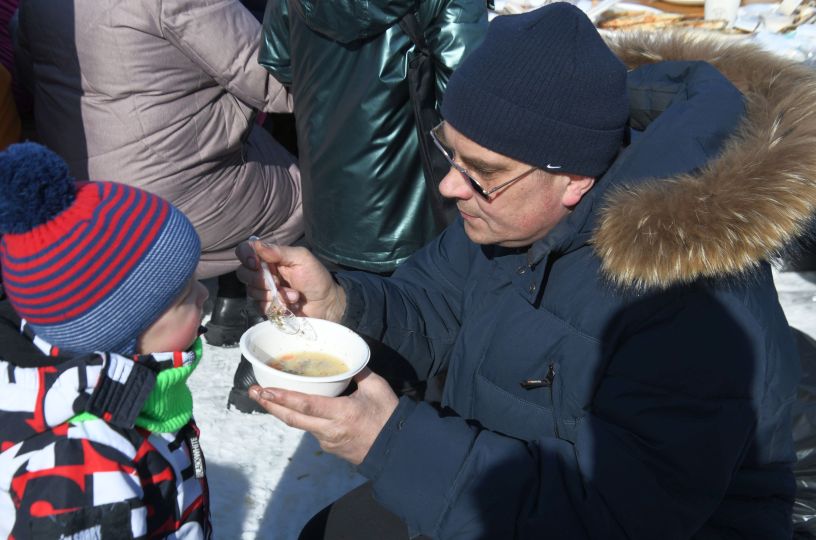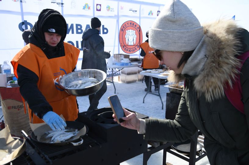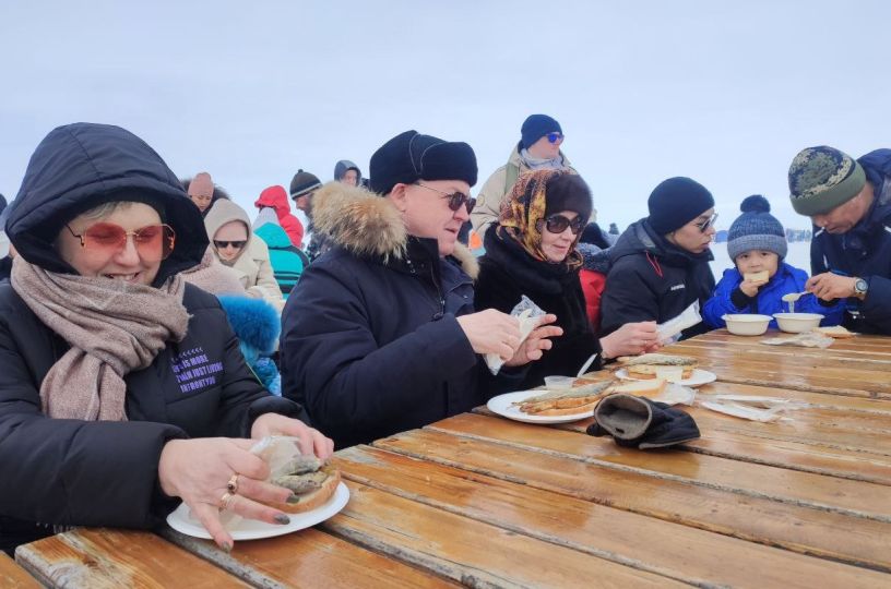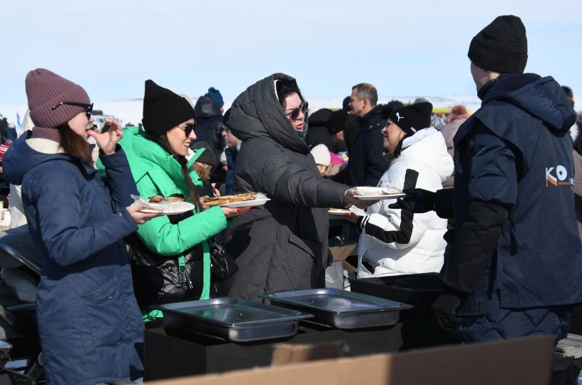 Всех желающих угощали жареной корюшкой и ухой "по-губернаторски". На разных площадках проходили концерт, спортивные соревнования и детские конкурсы. Гостей покатали на традиционных собачьих упряжках и снегоходах.